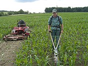 Auf der Versuchsstation Ihinger Hof gehen die Aufgaben der Vermessungstechnik weit über das Messen der Feldgrenzen hinaus. Alle Versuche werden inzwischen mit einem Geoinformationssystem (GIS) am PC geplant werden. Mit einem mobilen GPS-Empfänger und einem tragbaren Feldcomputer können diese - im Büro geplanten Anlagen - auf dem Ackerschlag exakt ausgemessen werden.